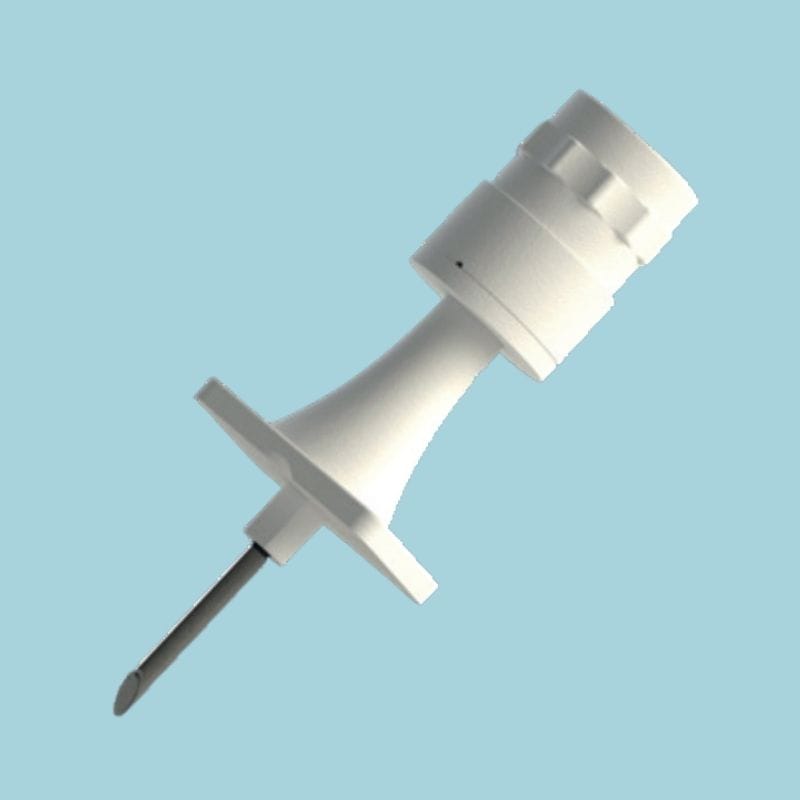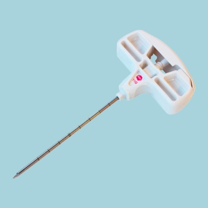 Agulha de aspiração de medula óssea com orifícios escalonados.
